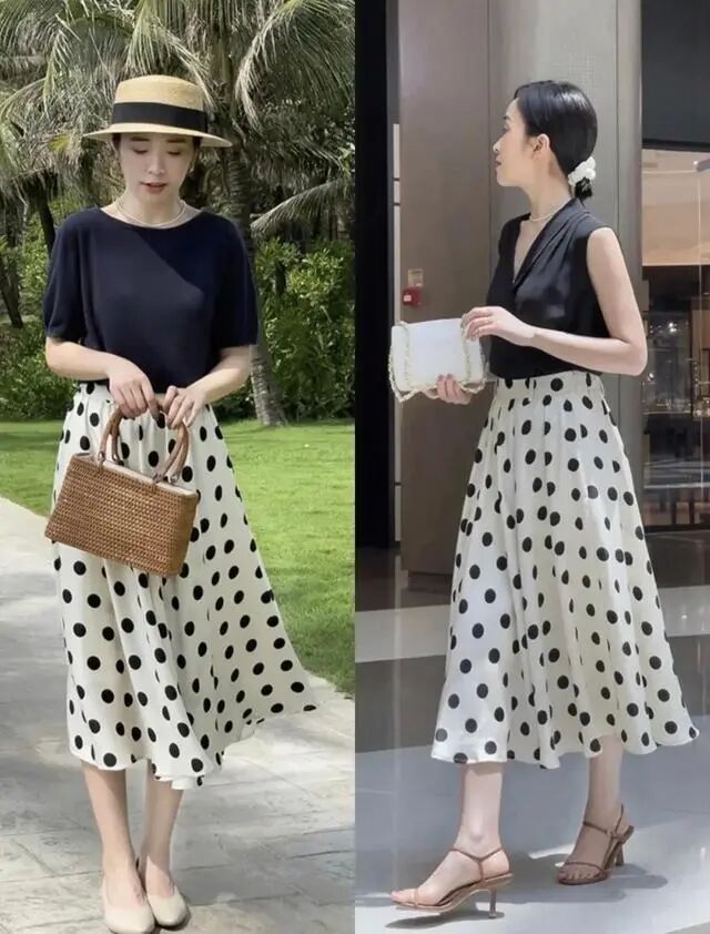 不管是连衣裙还是半身裙,花色繁复,鞋子配简洁的纯色最好!现在的鞋子款式实在是太多了,颜色也丰富,但我始终觉得黑白灰棕这四个颜色简洁大方又有气质,动静有序,繁简搭配,可以很好地发挥出裙子和鞋子的最大优点!