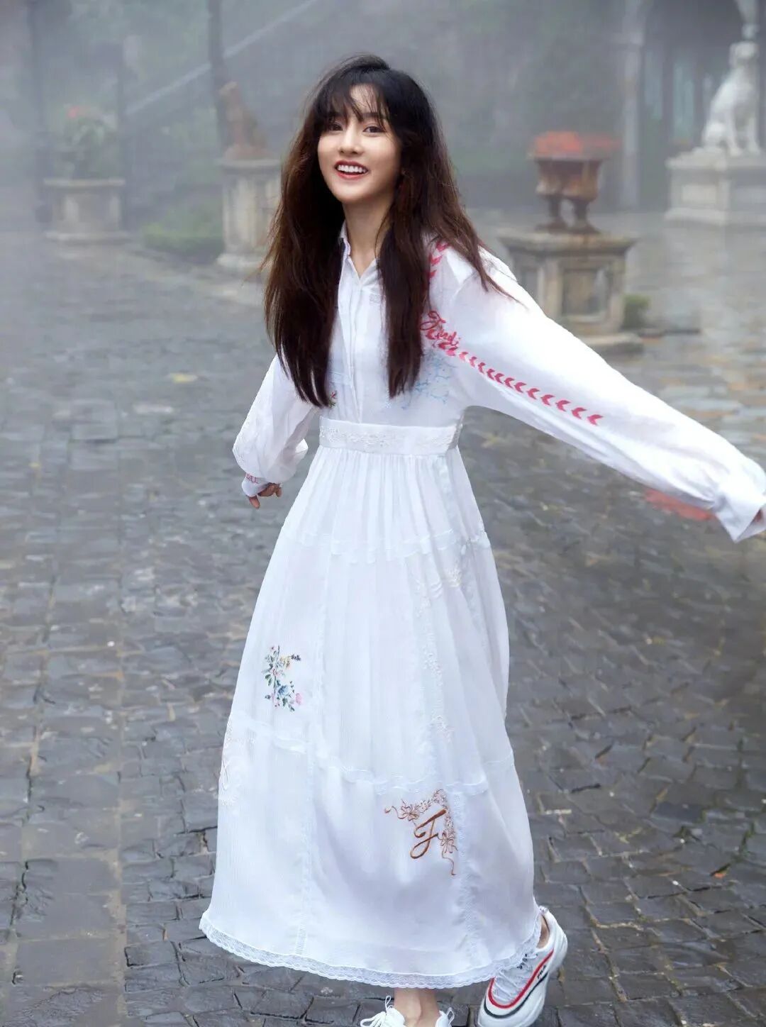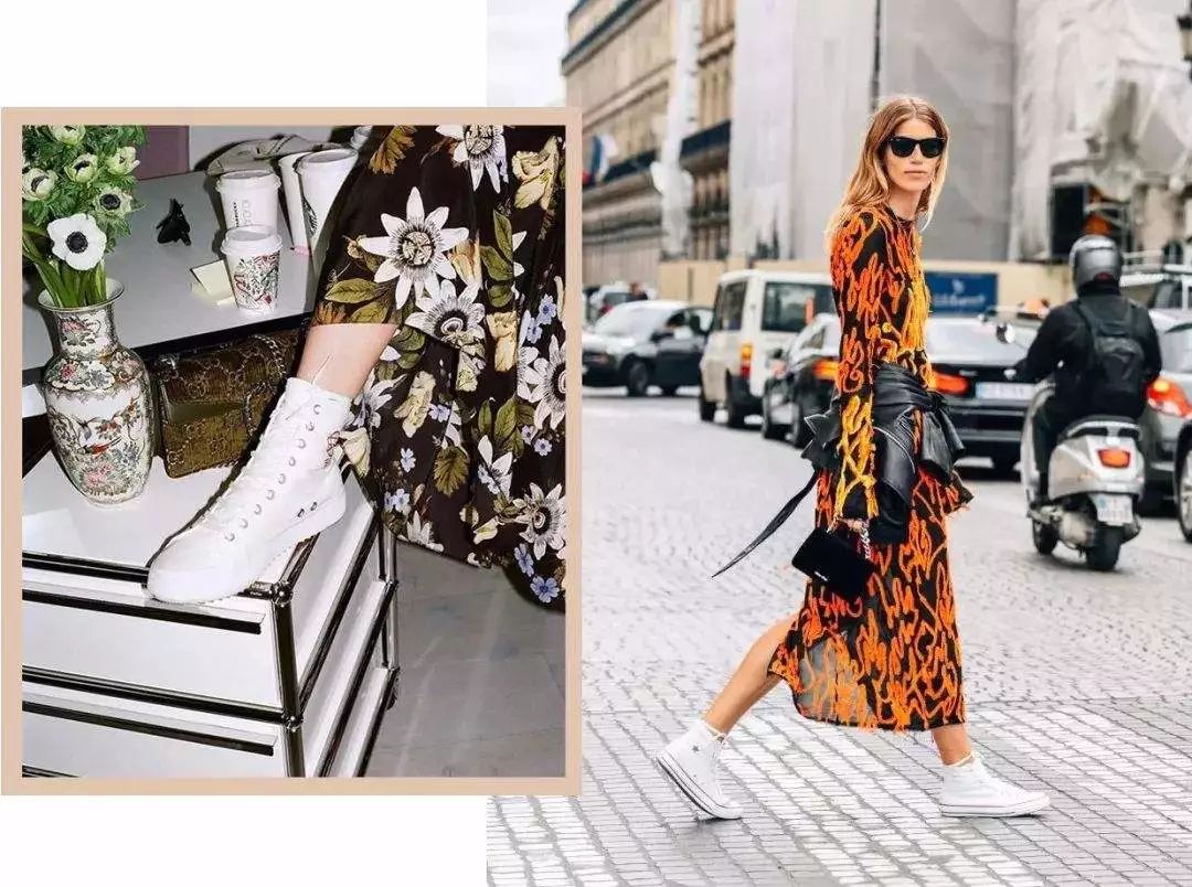而如果你的裙装混搭得过于“花样多”,小白鞋也有中和造型繁复的作用,使穿搭显得更加清爽许多。
