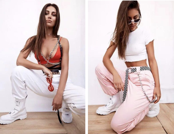 九分连体裤,工装裤,阔脚裤,配上一双小白鞋,它都能化腐朽为神奇,让整体look瞬间变得更加休闲有强调,美美出门。