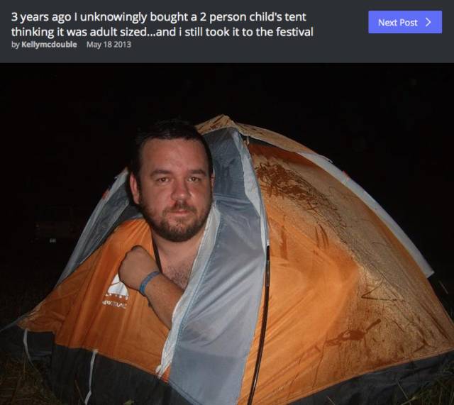 手滑买成了儿童帐篷,但还是坚强地钻了进去……