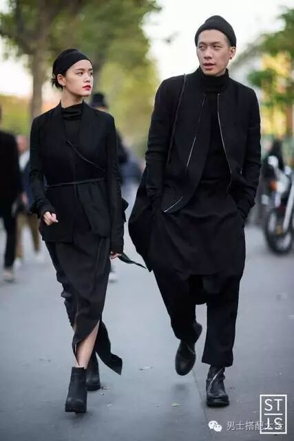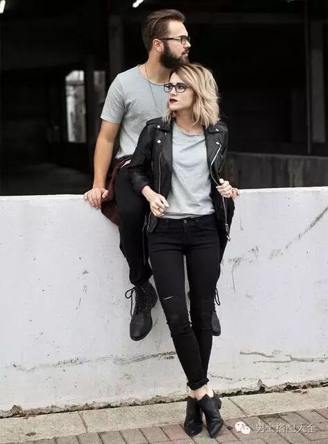 情侣装不一定要一模一样,元素一样也很厉害!例如下图的情侣,分别带了帽子和发带、衣服剪裁概念相似、同样穿踝靴、一身全黑。这样的方式也能表现出情侣的亲密、但又能彼此保持自由,是搭配君最爱的方式!