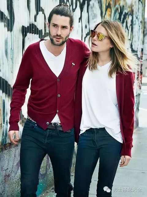 最简单的情侣装就是全身元素一模一样,让别人一秒看懂你们是情侣!这种方式也很简便,基本上选择时,挑适合两个人的颜色就够了,不太需要花太多心思慢慢配。