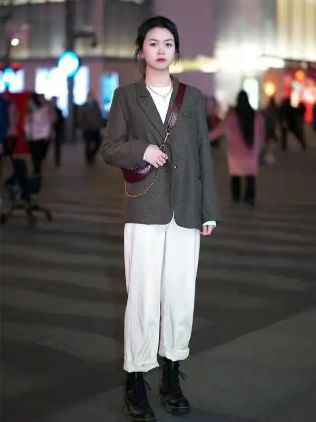 实操二:灰色西装+白色裤子+马丁靴
