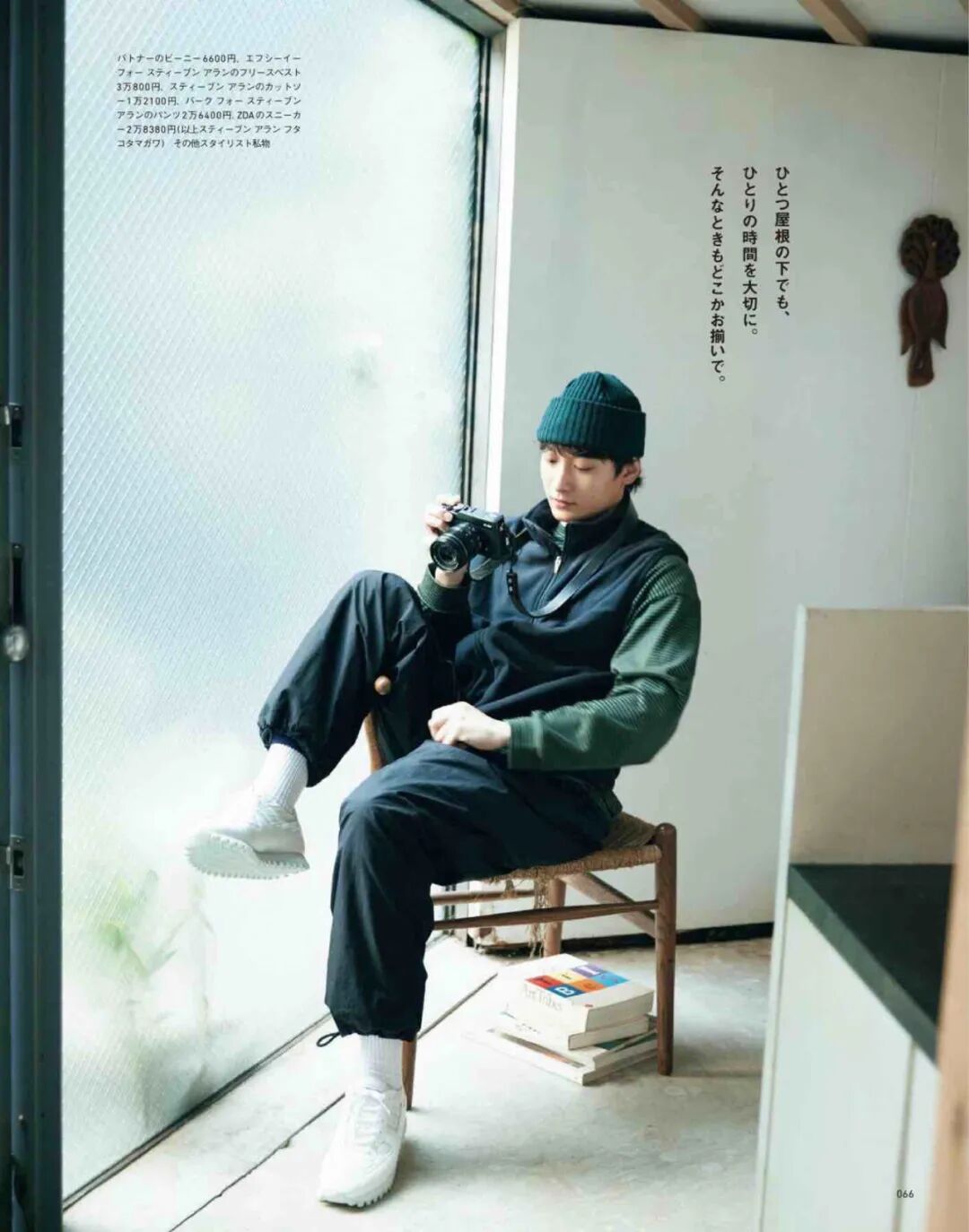 这组圣诞和新年的杂志照,主要表现了居家感,没什么距离,但帽子、毛衣和牛仔颜色的统一,又不至于压身高.