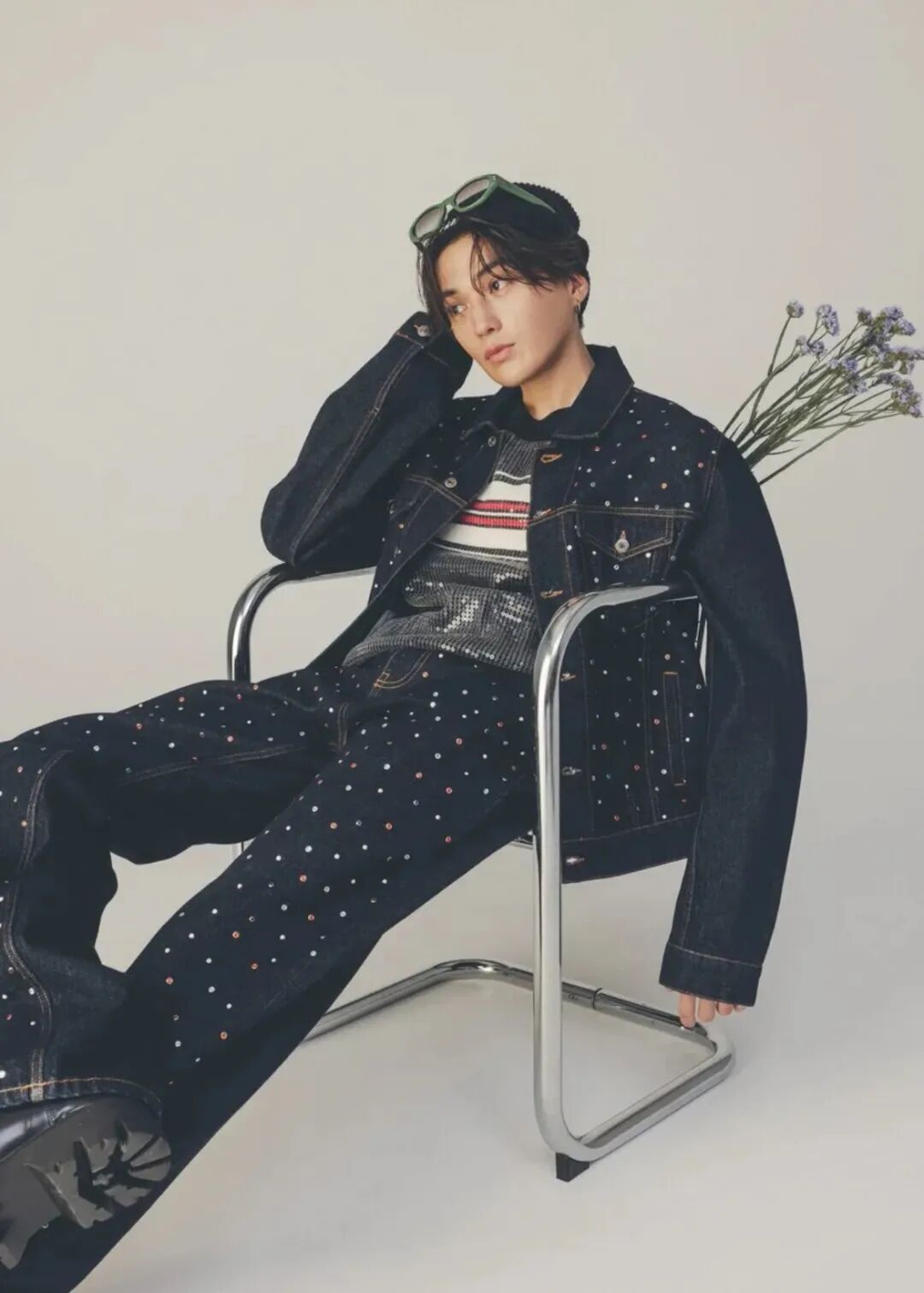 因为骨架比较宽大,穿得了正装,也穿得了休闲装.他本身的长相是有少年气的,特别是松松软软的刘海头,一身牛仔就很青春.