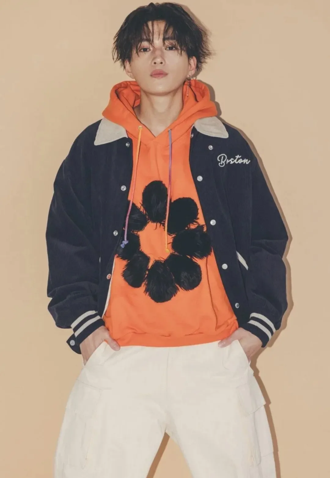 所以造型师为他搭配时,总是青春阳光与酷帅相结合,把他的长相特点混搭在一起,形成独具他气质的look.