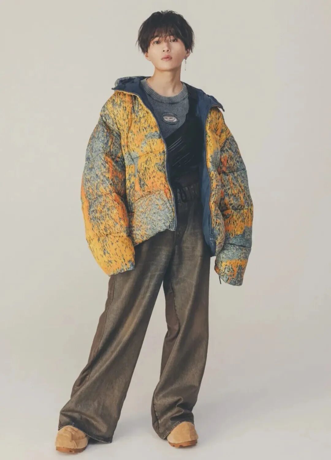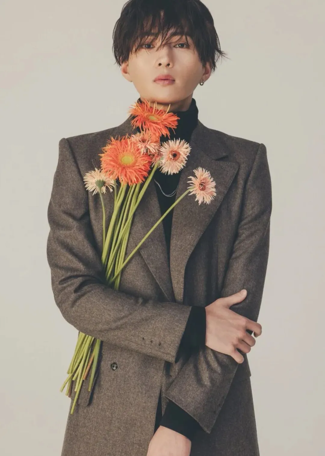 随着年龄的增长,气质越发成熟,已经完全是男人味儿的脸.所以秋冬的衣服即使看起来比较随意,也会搭配稳重的褐色、棕色,以及皮靴.