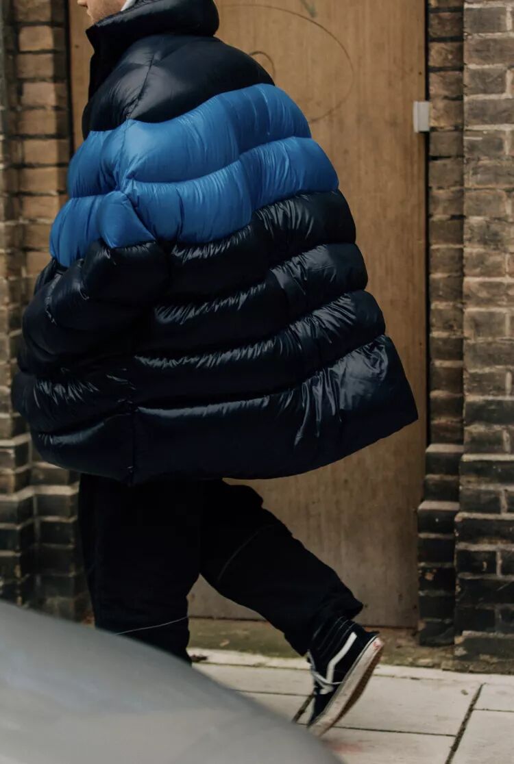 其次是款式和长度,和大衣风衣同理,并不是所有人都能驾驭得好Oversize,街拍上常看到的超大羽绒服,更多的还是用来凹造型,但在实穿度上并不占优势,还可能呈现头重脚轻的形象。