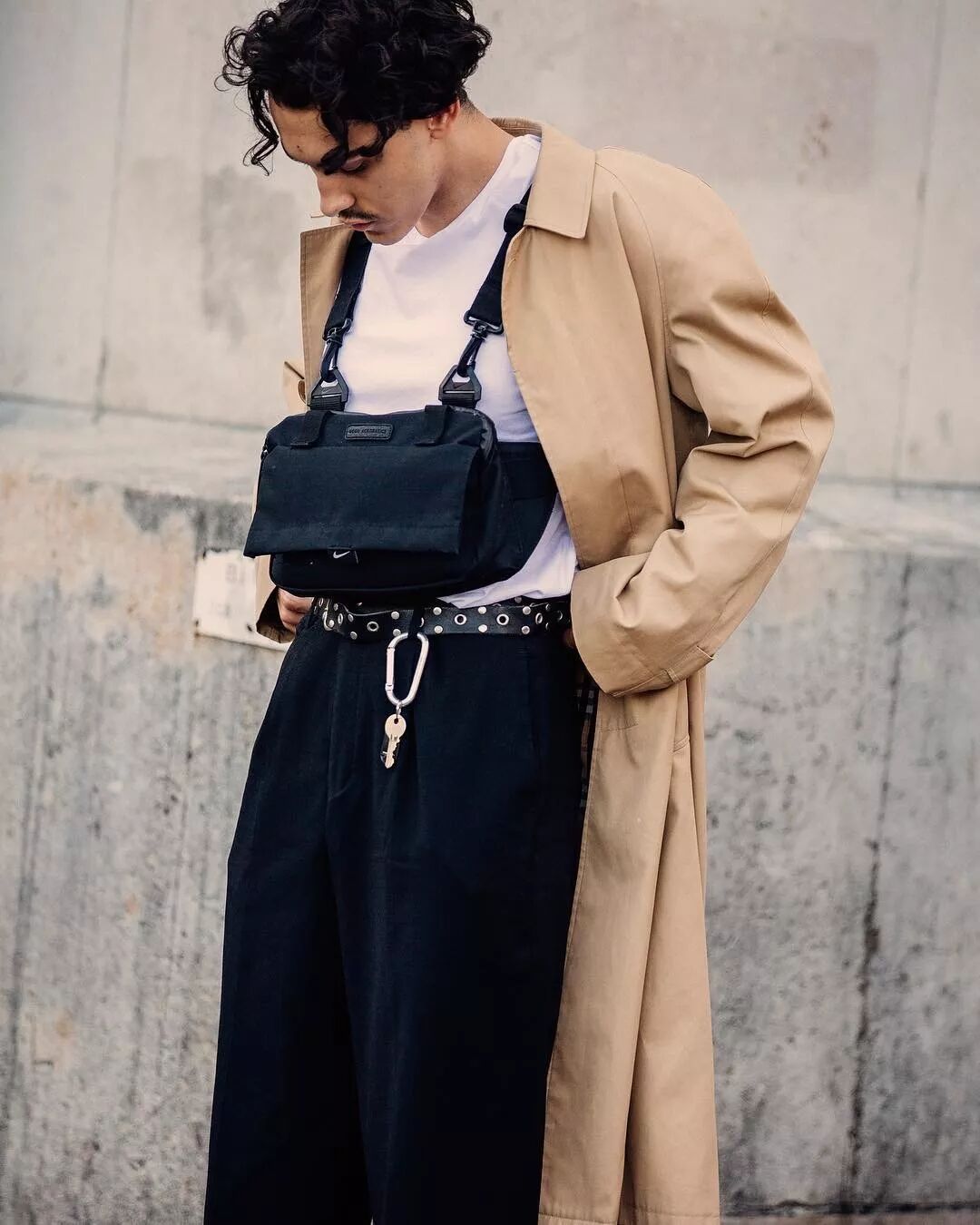 >> 在大致的搭配完成之后,再选择用一条钱包链挂在裤子一侧,从细节上丰富整套look.