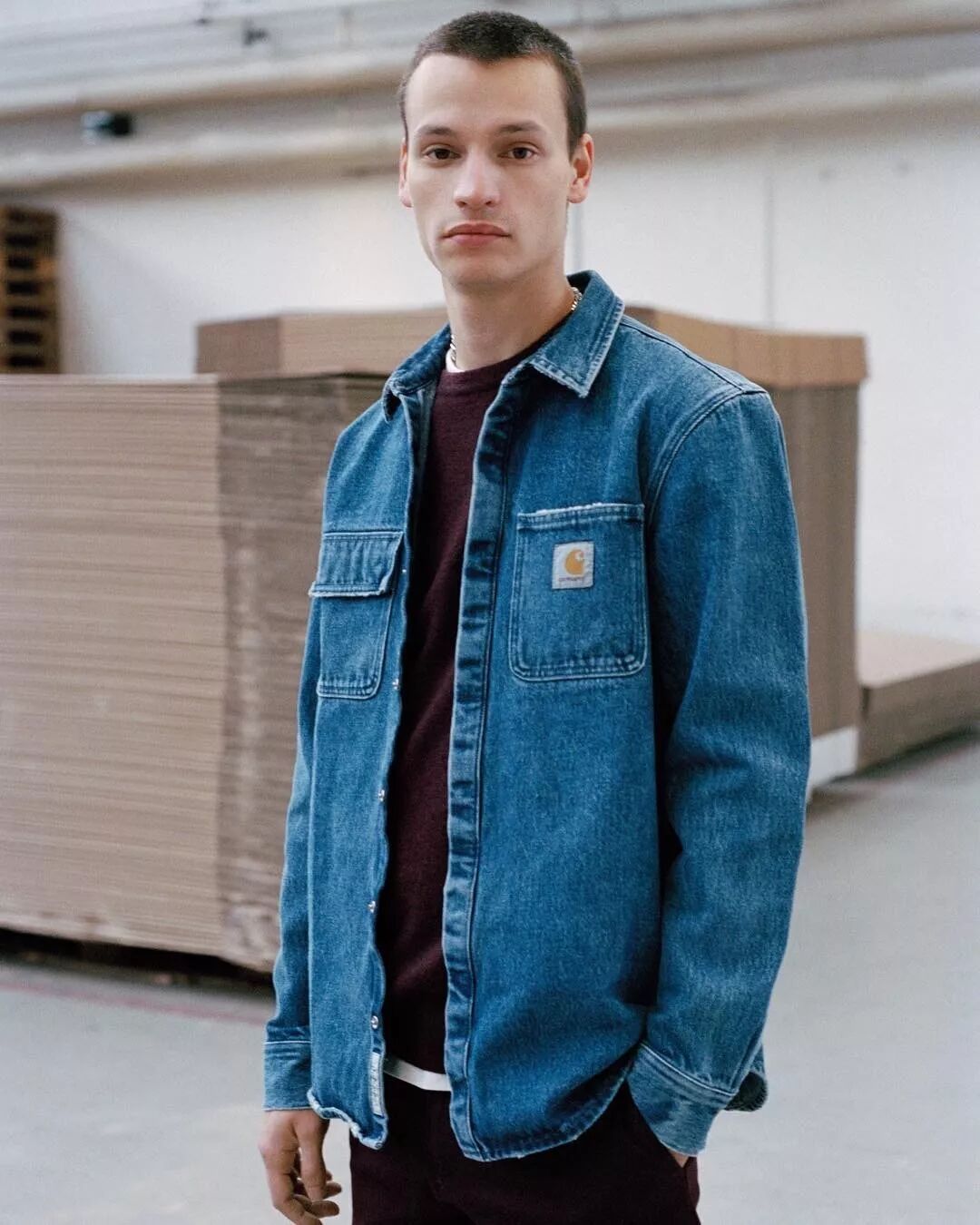 有些男生或许觉得大衣/风衣有点成熟正式了,那么工装夹克的休闲与街头可能更适合你。它的类别比较单一,多以牛仔丹宁和帆布外套的形式呈现。纯棉和牛仔丹宁面料相对于来说更加厚实、挺阔,版型也会更加立体。但如果在考虑舒适度的角度上,竹节棉面料是一个不错的选择,透气性较高。