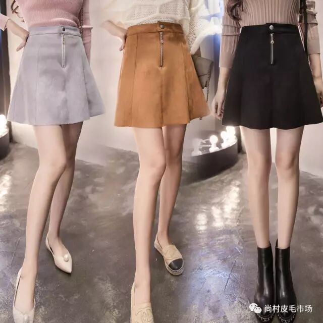 2016秋冬新款修身显瘦鹿皮绒a字裙拉链半身裙百搭短裙子女潮