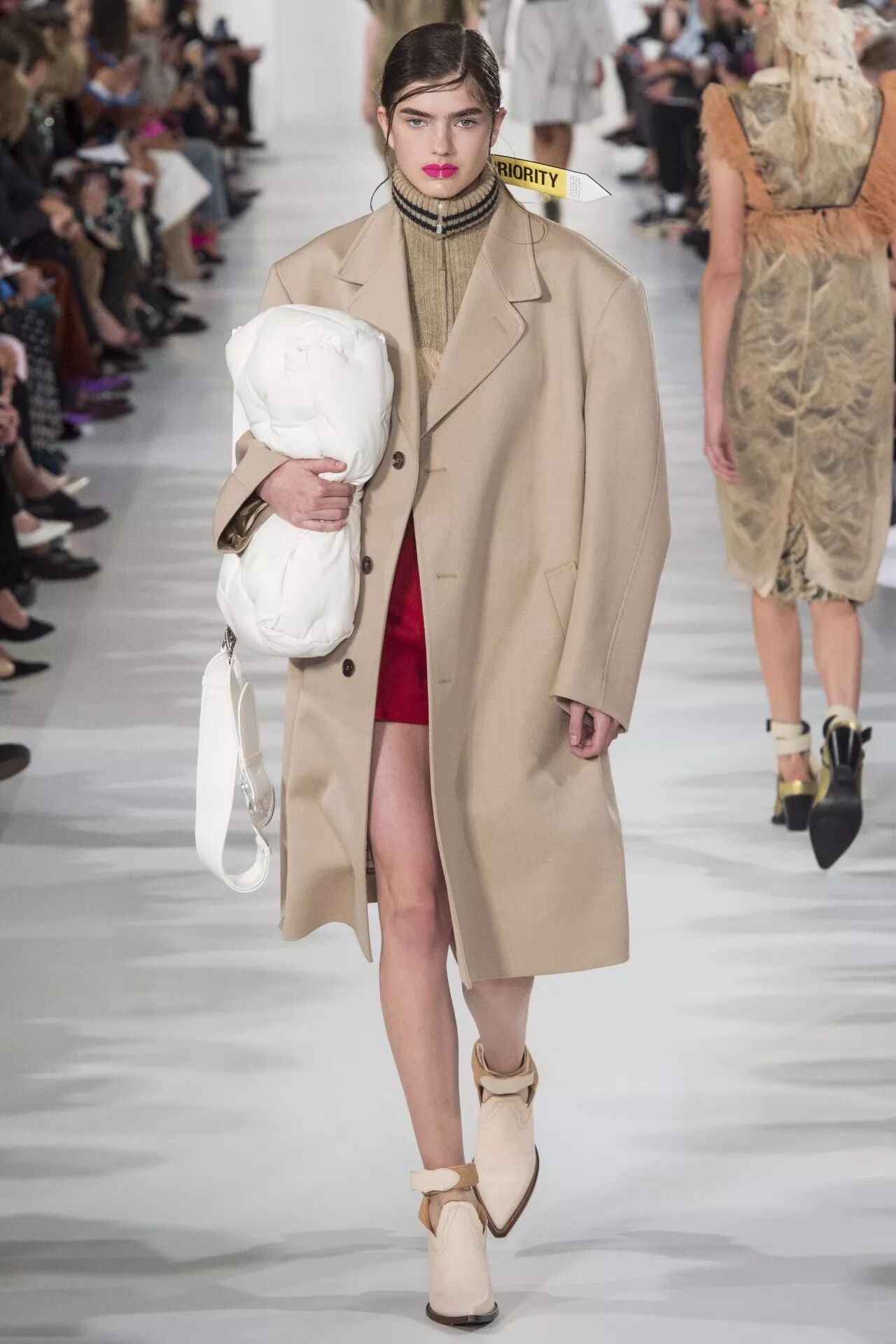 一些顶级超模身上的全燕麦色搭配,借鉴性不高,一般人很难驾驭。这时,我们需要搭配其它颜色来增添燕麦色的视觉感染力,加入热烈的红色点缀,想不闪耀都难▼