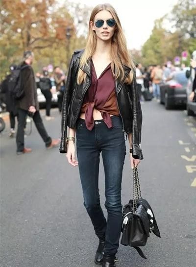 还记得这个夏季性感的一字领穿衣风潮吗?秋天依然可以这么做,衬衫也能够故意只从第二的扣子往下扣,微微露出肩部和锁骨也可以显瘦呢!