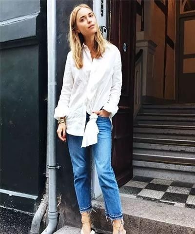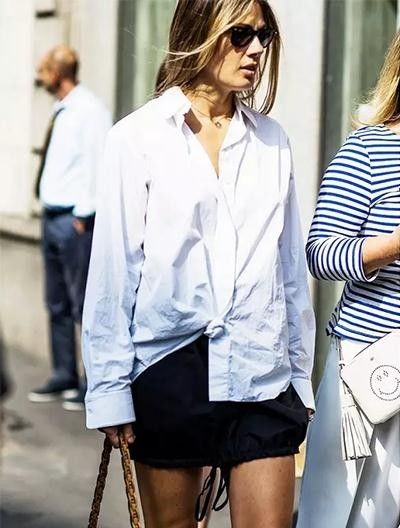将衬衫打结。不得不说衬衫一直是穿搭中的百搭单品,衬衫反穿法最近也红片半边天,不过要是妳还没有那么大的勇气或自信露出背部的话,可以试试看将衬衫打结,裙装裤装都很适合呢!