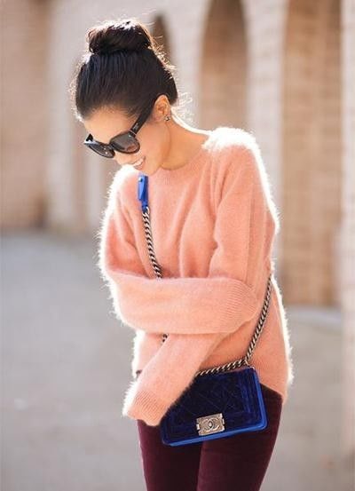 扎起你的毛衣前端。总是觉得衣服在不经意的时候跑进裤子里是很糗的一件事嘛?那就错了!现在裤头扎进一小段毛衣可是很受欢迎的,随性的感觉也给人更放松、好相处的形象。