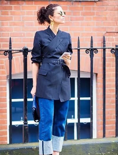 卷起袖子。不管是穿长袖或者是风衣其实当天气微凉不会很冷的时候可以卷起双袖,让外套甚至是套装看起来不会这么的拘谨。