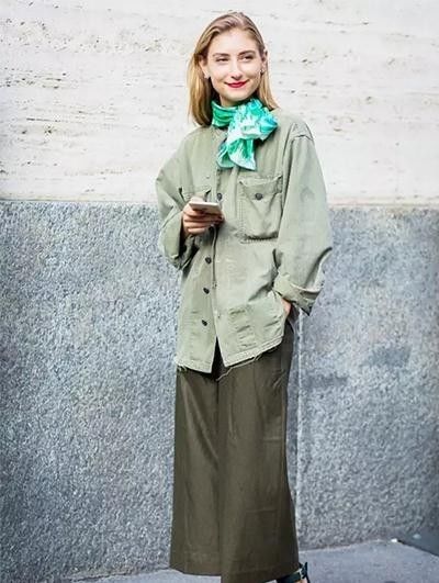 加条围巾。夏季的丝巾打法秋季一样也能运用,衣服加厚的同时也别忘了替自己的穿搭多加一点层次喔!