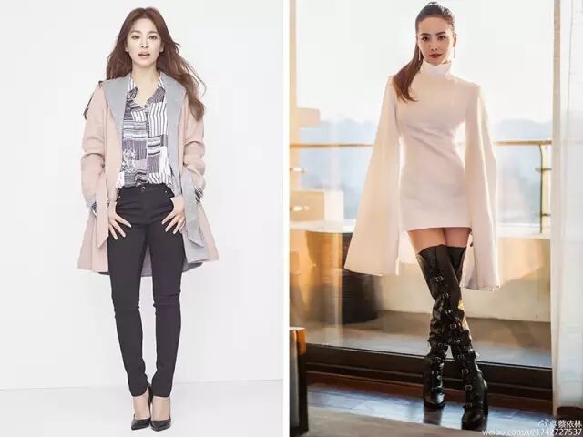 比如156cm的男神收割机宋慧乔和天后的蔡依林▼