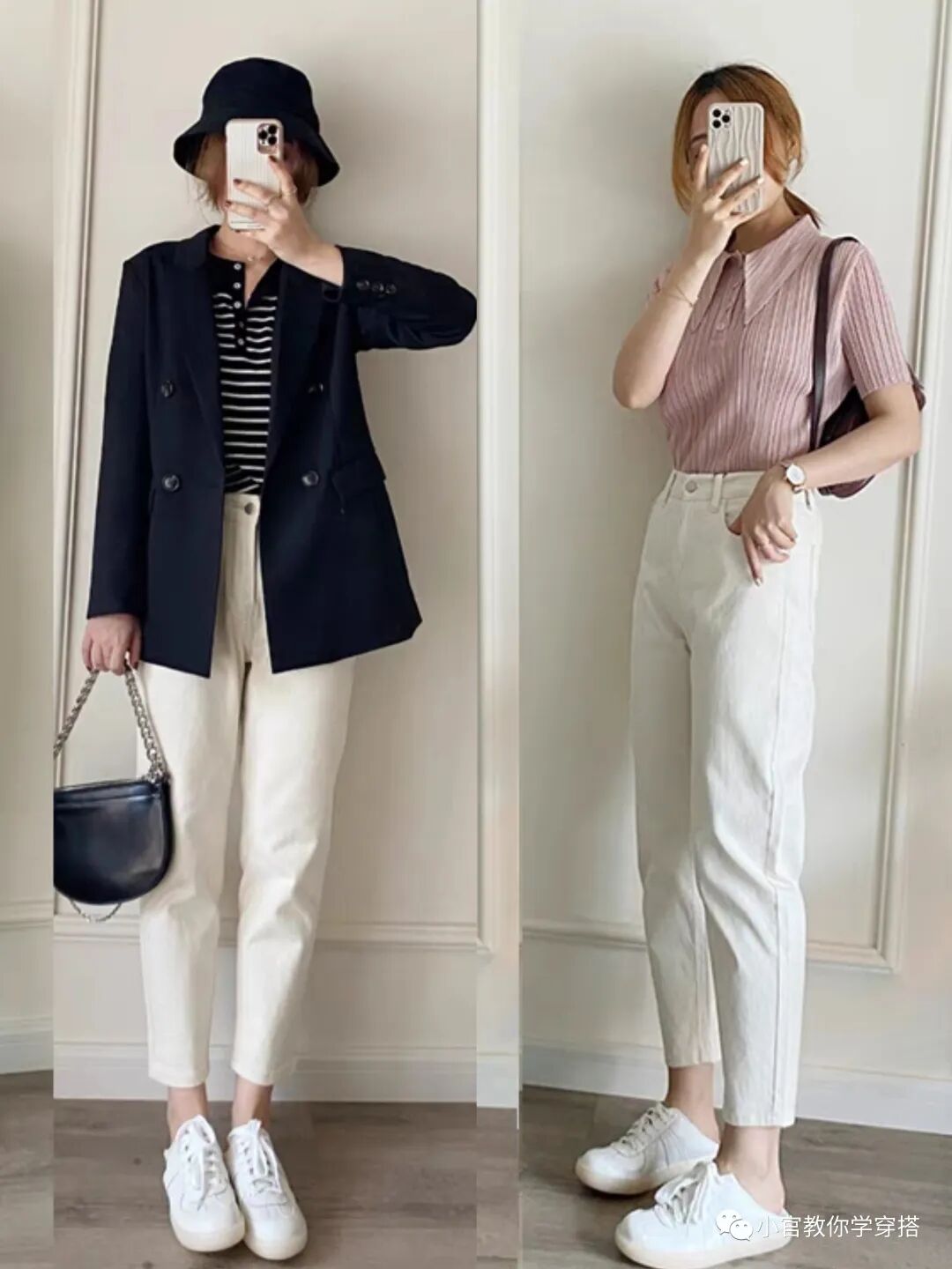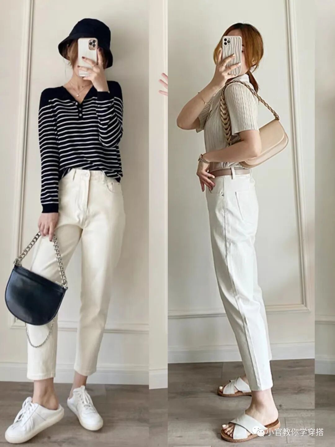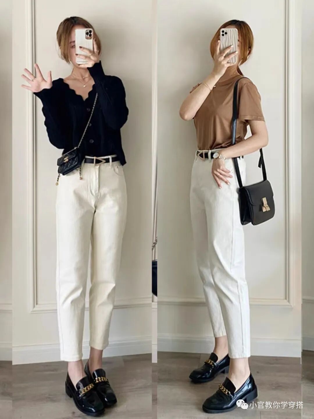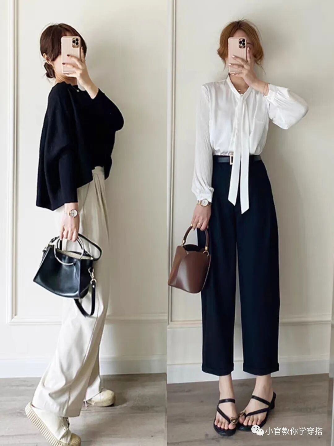 搭配一:简约黑白配:简约黑白配是秋季女生通勤上班气质显高穿搭的经典搭配之一。黑色小脚裤能够勾勒出女生们的腿部线条,让身材更加高挑。搭配一件白色衬衫,既能提亮整体造型,又能展现出干练利落的气质。此外,建议选择一款简约的黑色皮鞋,提升整体质感。在配饰方面,可以选择一款精致的项链或手链,增添整体造型的亮点。