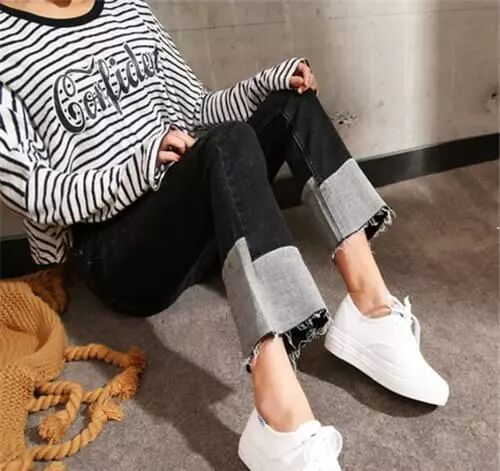 另外裤子也是其中很重要的一环,在长度上尽量不要选择太长的,因为也会影响到整体的视觉感,最好是要选择九分裤,让裤子露出小腿最纤细的部分。这款九分牛仔直筒裤胖瘦都是很好驾驭,对于小粗腿星人也是可以的,恰到好处的九分长度,微露出脚裸,性感遮肉两不误。