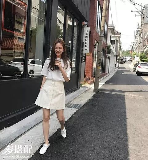 米色是夏季的常见流行色,一件米色T恤搭配同色系的A字裙,再加上平底小白鞋,特别的清新温柔。▼