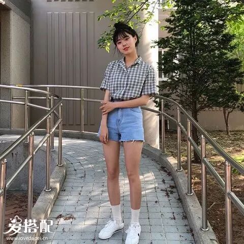 除了条纹,还有格子,一件清新的格子衬衫和小白鞋也很配哦!▼