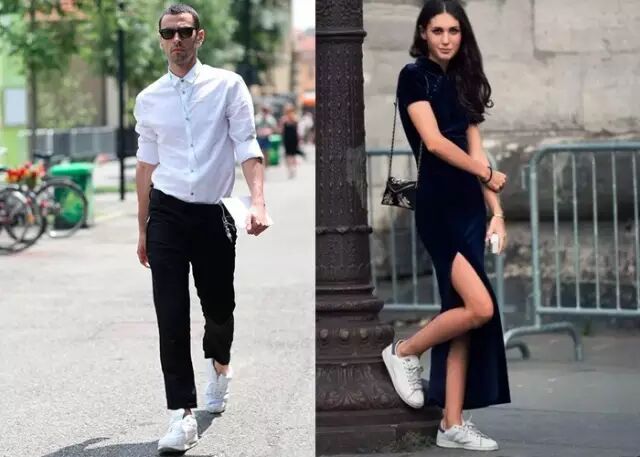经典的单品总是男女通用的,男士钟爱的小白鞋,这两季火速席卷了四大时装周,女士穿起来也是一样帅气迷人!白球鞋本身那流畅的线条、百看不腻的白色皮革、舒适的穿着感、海纳百川的搭配性和不论高矮胖瘦都能驾驭的亲民性,正是它人见人爱的真正原因。