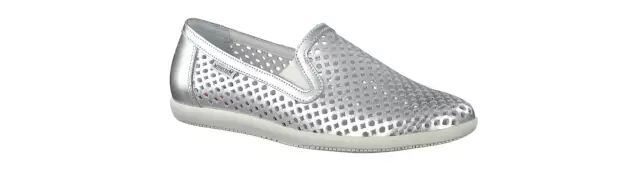 这款女鞋采用产自欧美的优质牛皮,皮质细腻柔软、透气性强,金属色系凸显时尚与活力。一脚蹬的设计,令穿着非常方便,并且特别设计了菱形透视冲孔,可以增加鞋子的透气性。