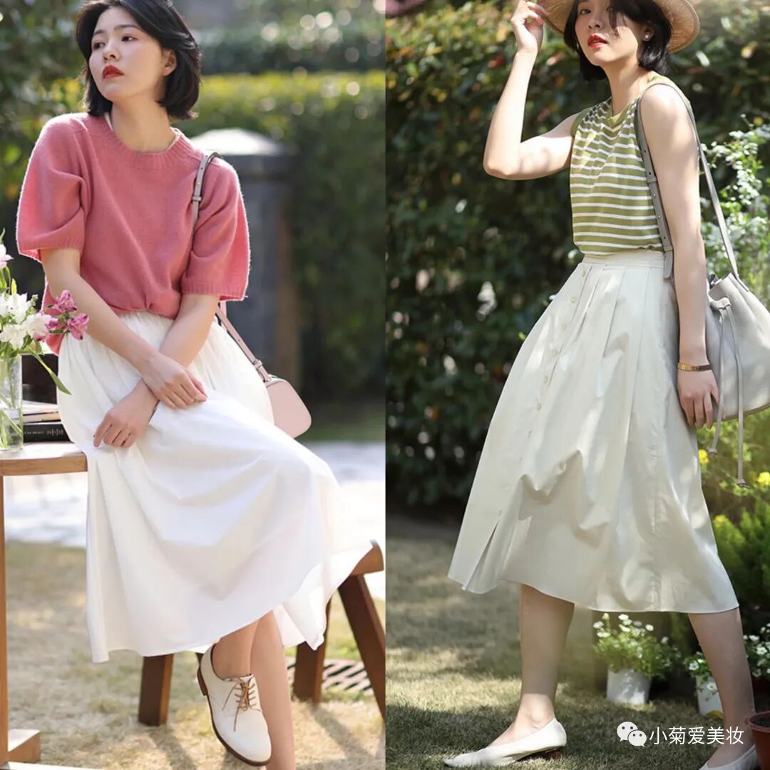 年龄越往上越喜欢简单干净的穿搭,针织短袖T恤衫这两年的流行趋势也很明显,配波点半裙、碎花半裙都不会出错,是最不费力的穿搭了~