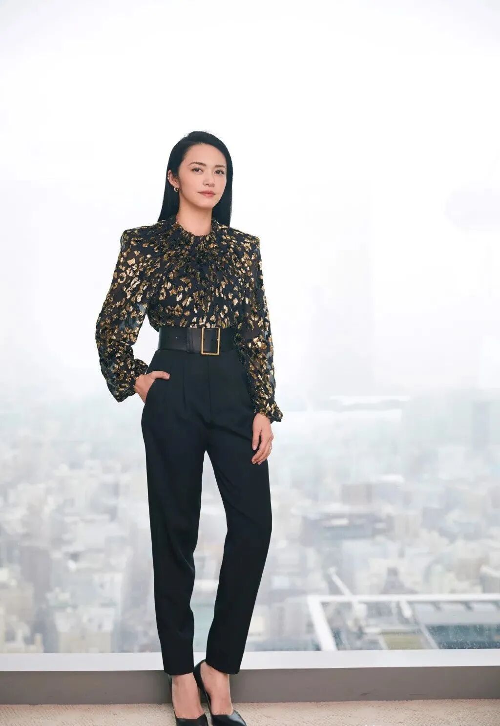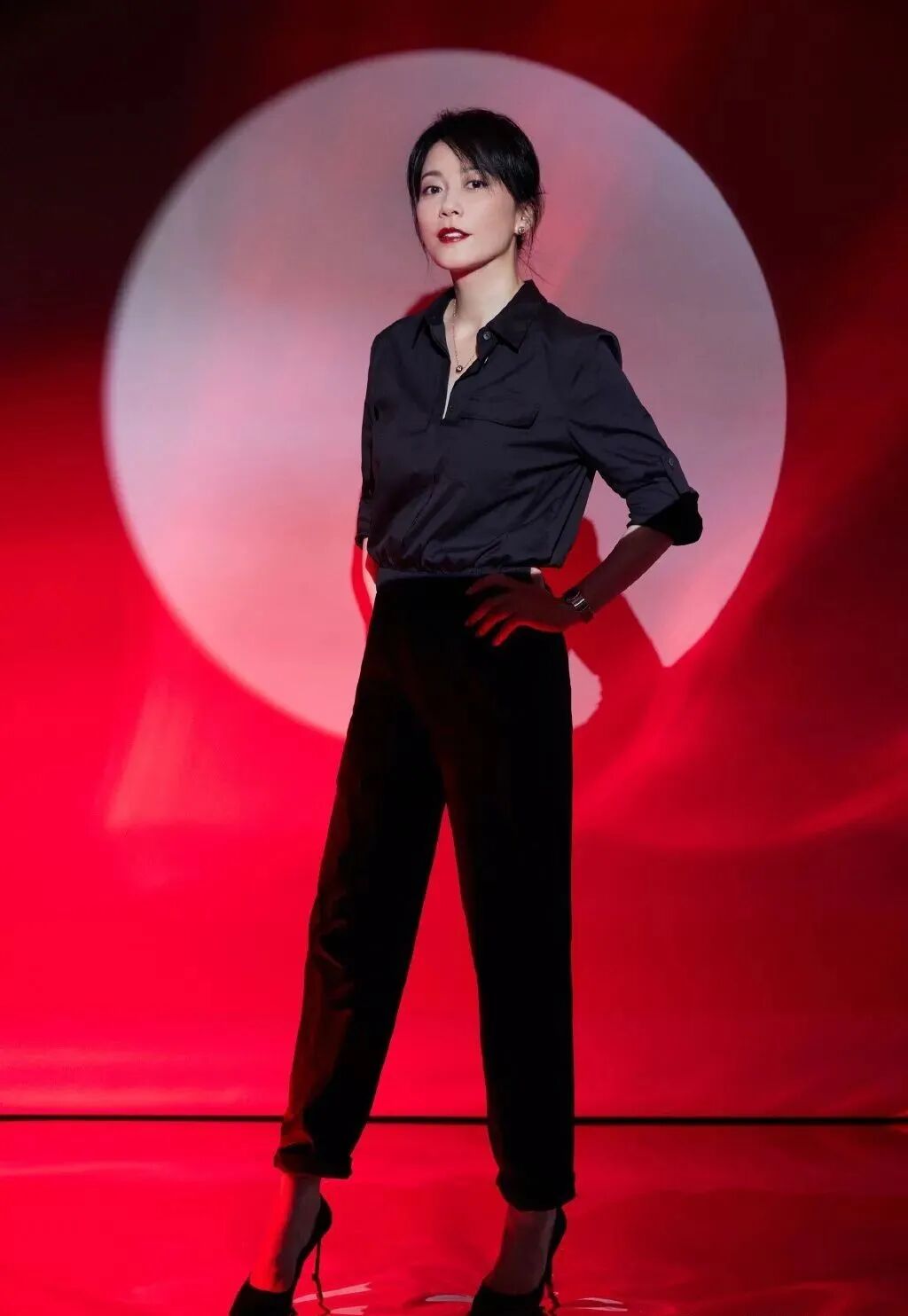 当然很多40+的女性在职场发光发热,黑色的衬衫+同色系的烟管裤,稍微折叠一下裤腿,搭配尖头露脚背的高跟鞋,整个人显得利落又高挑。
