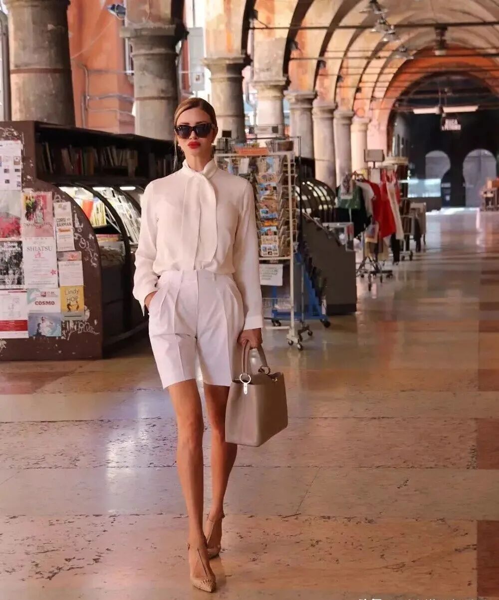 而且40+的女性很多都是苹果型身材,选择短裤西装套装露出纤瘦的小腿也是显瘦的好选择。