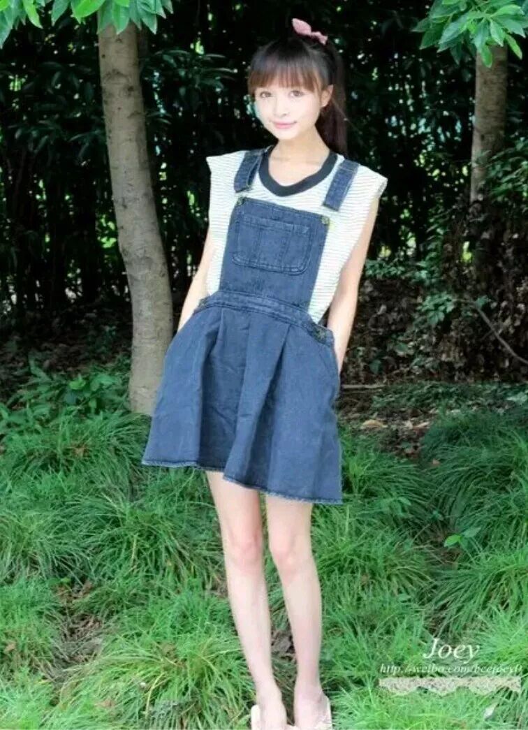 这款吊带裙,搭配着条纹风格的衬衫,在搭配一款高帮的蝴蝶结凉鞋,足以让你成为校园里的小美人。