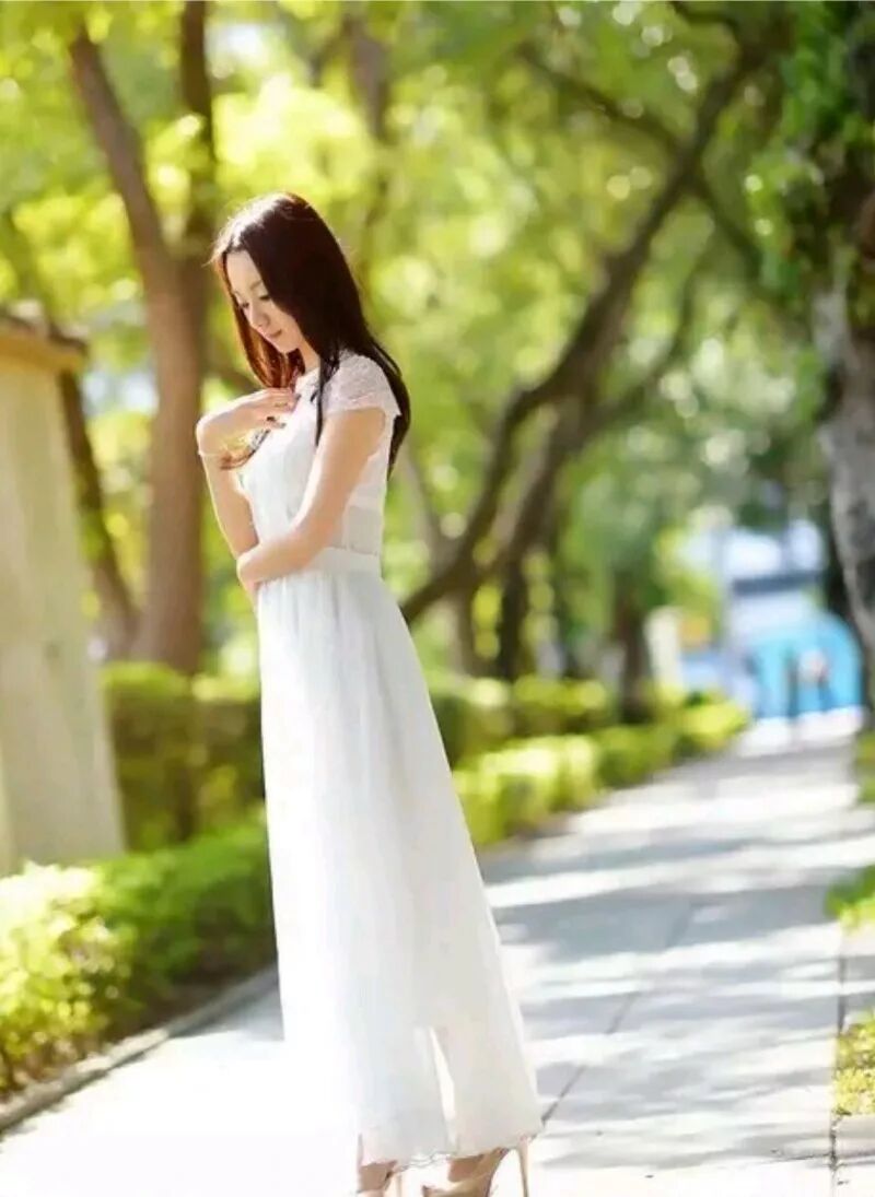 白色长裙+高跟鞋