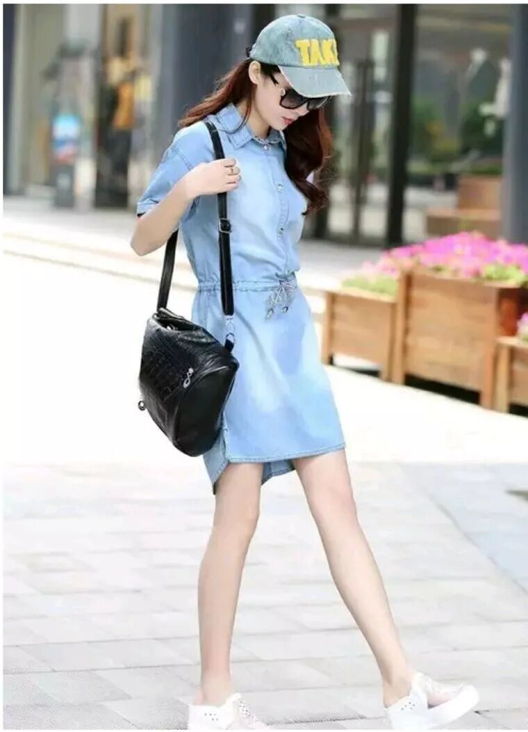 如果你是一个特别喜欢牛仔的女生的话,那么这款收腰设计的牛仔裙,可以陪伴你整个夏季。虽然作为一个学生不是很有钱,但是也需要有几件穿得出去的衣服,逛街,约会的时候还是有必要的。清新的学院风搭配却一直是时尚MM最喜欢尝试的出街装扮,好在这个年龄的女生不需要装嫩,因为本来就很嫩。