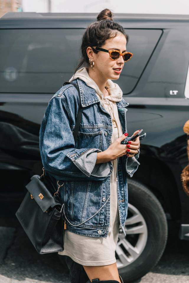 卫衣和牛仔外套都是运动休闲的典范,搭配起来真的是毫无违和感。