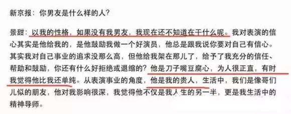 其实,景甜的“后台”不是什么亲爹啊干爹的,她自己也公开承认过她的男朋友就是她的贵人。