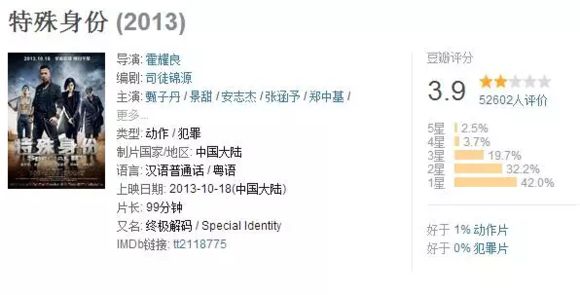 后来,《特殊身份》又是甄子丹、张涵予和郑中基来配戏。不看不知道,一看这都豆瓣评分也是对不起这一票大咖。