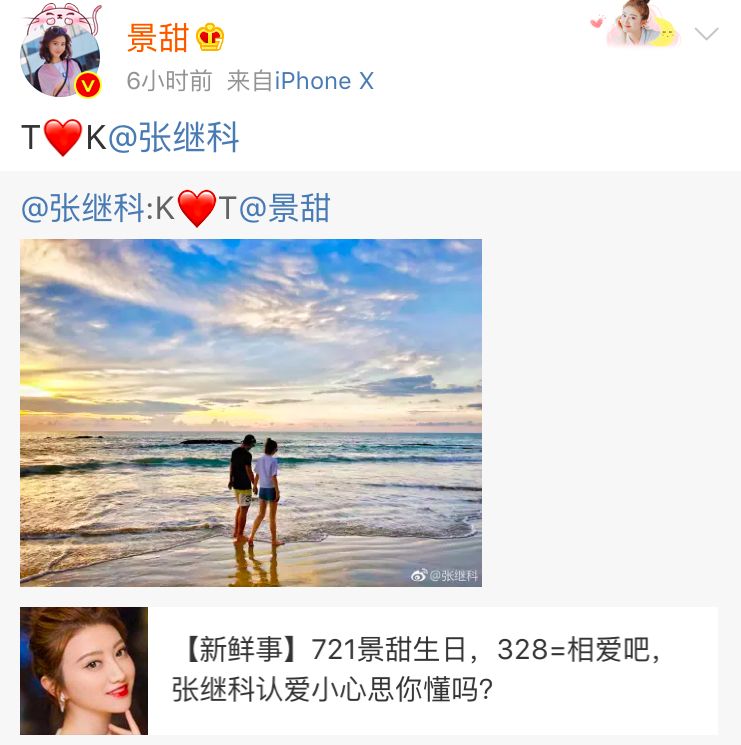 有爆料说景甜在和金主男友分手半年左右的时间就和张继科在一起了,但是我们情商在线的景甜也没有和前男友上演撕逼分手戏码,反而大家还是做朋友,偶尔也资源互换一下。