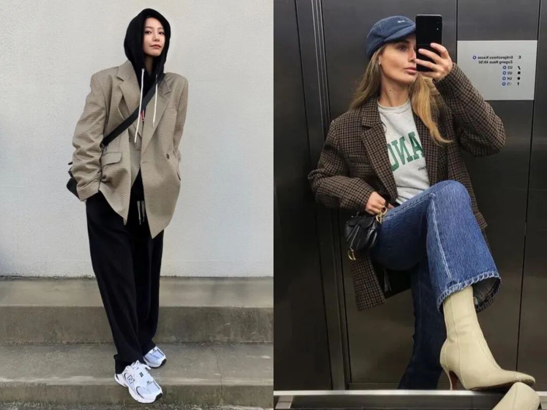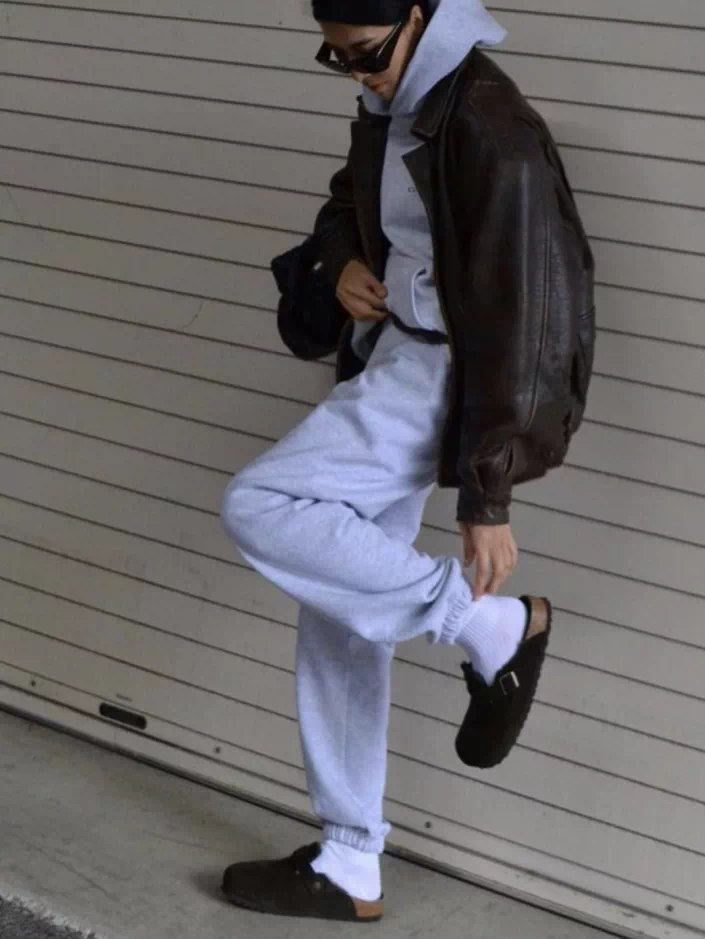 尤其是卫衣和运动裤的成套组合,ins博主们几乎人手好几套。可通勤,可休闲,随手一套就能get满满的Athflow风。还可以稍微改良一下,把下半身换成宽松版的运动裤,遮肉显瘦的效果更明显。