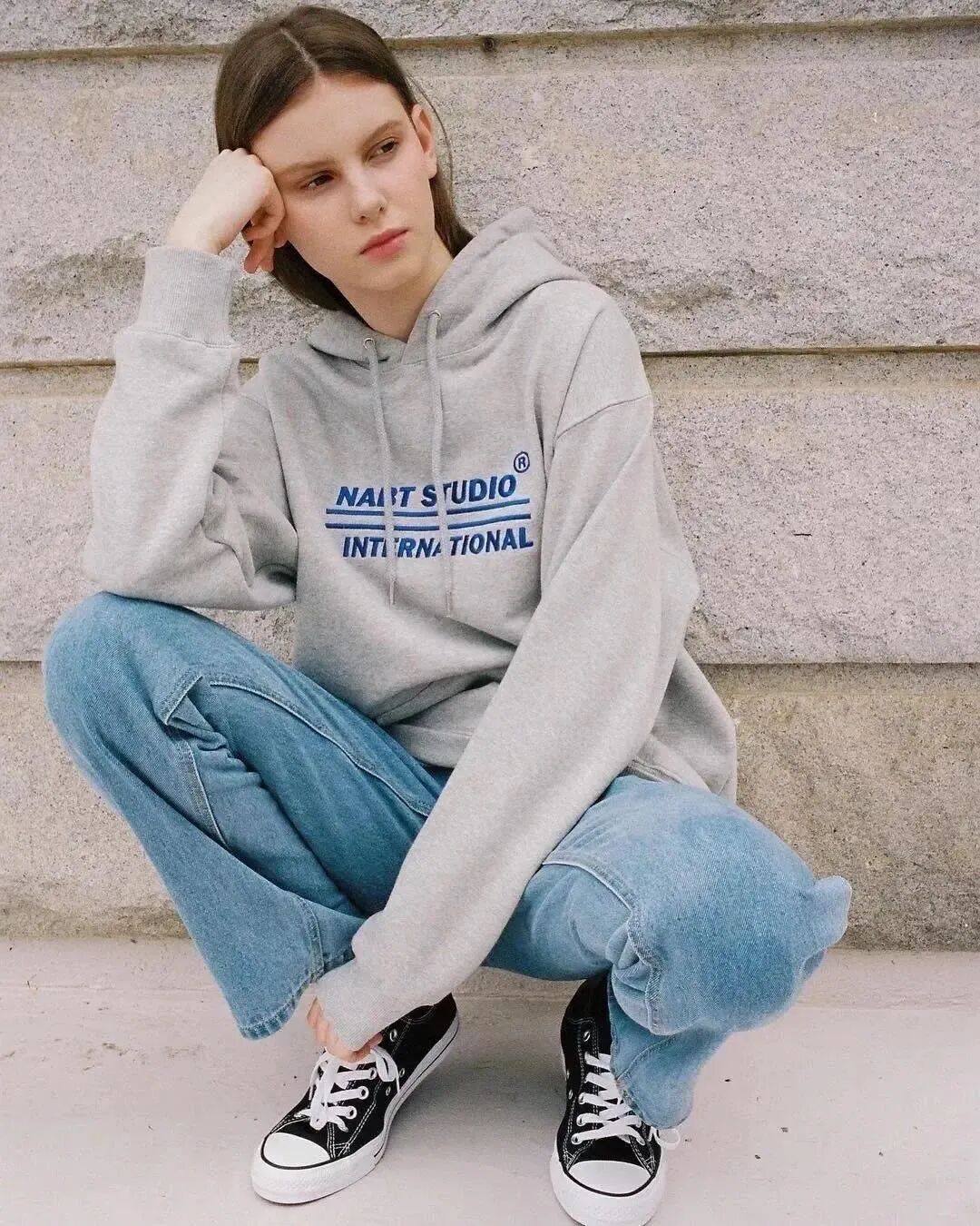 卫衣和牛仔裤算是时尚圈儿经久不衰的CP了,女明星们私下里也爱这么穿。