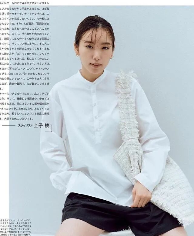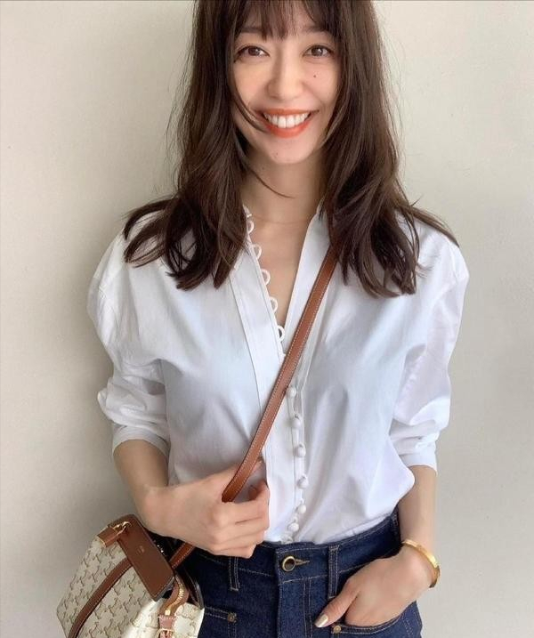 像这种简约的白色衬衫,电视用最为朴素的一种设计和展现形式来表达时尚,搭配长款的牛仔裤,水洗白和杏色之间是很有配合程度的,并且用了一个非常小的迷你包包进行点缀,基稳中有干练,同时又增加了休闲性和时尚性。