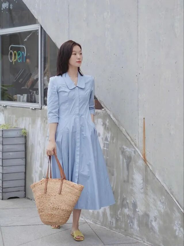 连衣款式的裙装优势在于更方便搭配,选择一款合适的颜色和整体的版型,就能够让整体的造型变得更加的优雅又大气。
