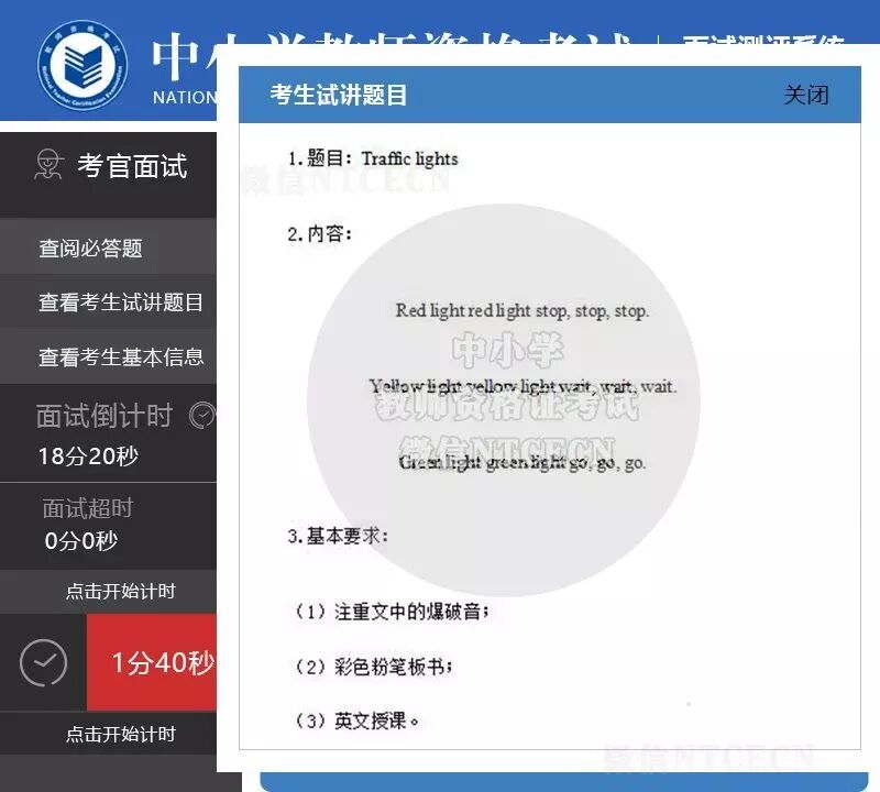 若考生忘记把门关上,可作问候语开场白结束后,即将走上讲台进行试讲前,先将考场门轻轻关好,再从容走上讲台进行试讲。