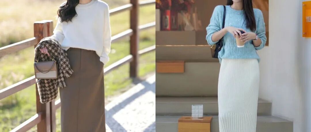不得不说,这是最适合中年女人的春季搭配:针织衫+过膝裙!优雅好看