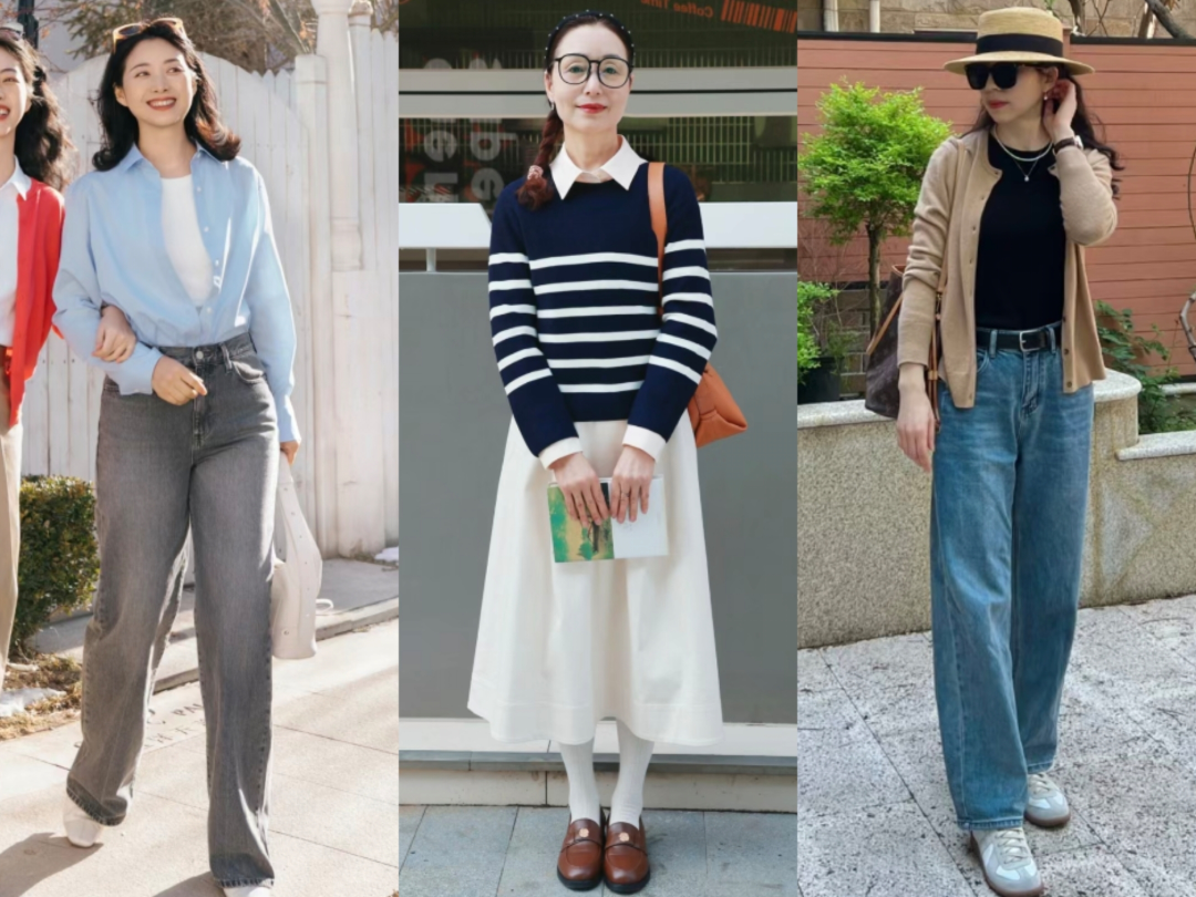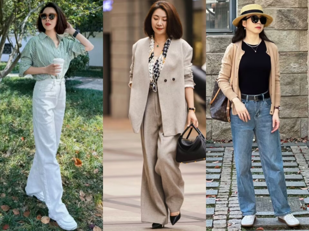 二、这3套春季穿搭高级又减龄推荐穿搭1:阔腿裤+运动鞋运动鞋其实很百搭,跟很多服饰单品都能搭配出不同的风格。比如上方图左那位女士,在里面穿了一件红色的打底内衬,下半身穿一条白色阔腿裤。白色的风衣跟阔腿裤的颜色相互呼应,风衣还能灵活应对天气变化。脱下来的内搭跟阔腿裤形成了上紧下宽的搭配效果。而右边的女生则是穿了一件有设计感的条纹开叉上衣,搭配一条浅蓝色的牛仔裤和运动鞋,时尚感扑面而来。图片来源小红书账号ID:ANIIKA2007