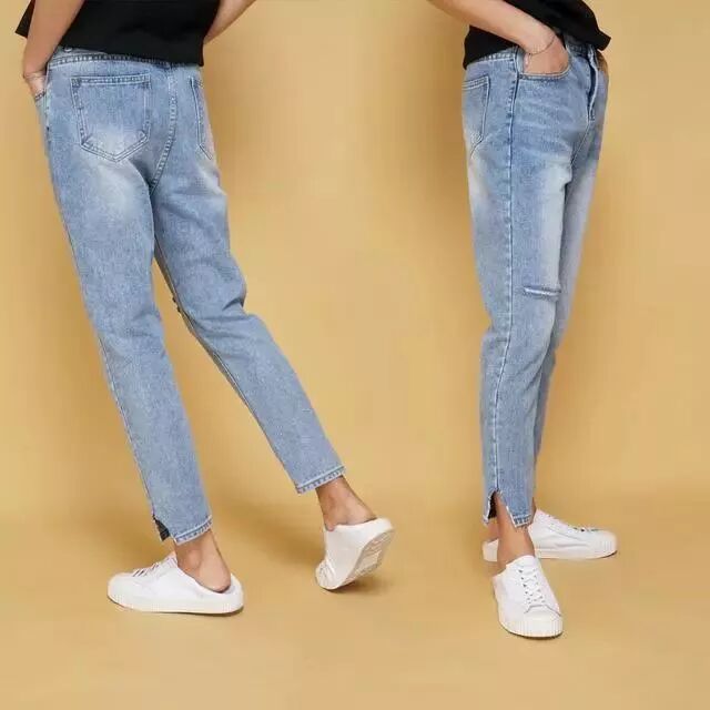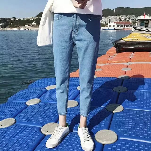 新款韩版修身收腿显瘦九分露脚腕水洗高档牛仔裤