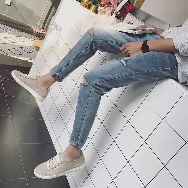 这条洗水破洞牛仔裤的裤型非常好,纤细而修长,但不会紧绷。这样的裤型能很好的包容和修饰我们的腿部线条,高档位的设计加上胯部横向猫须洗水,让你看上去全是腿长180,搭配潮流破洞元素更显时尚品味。