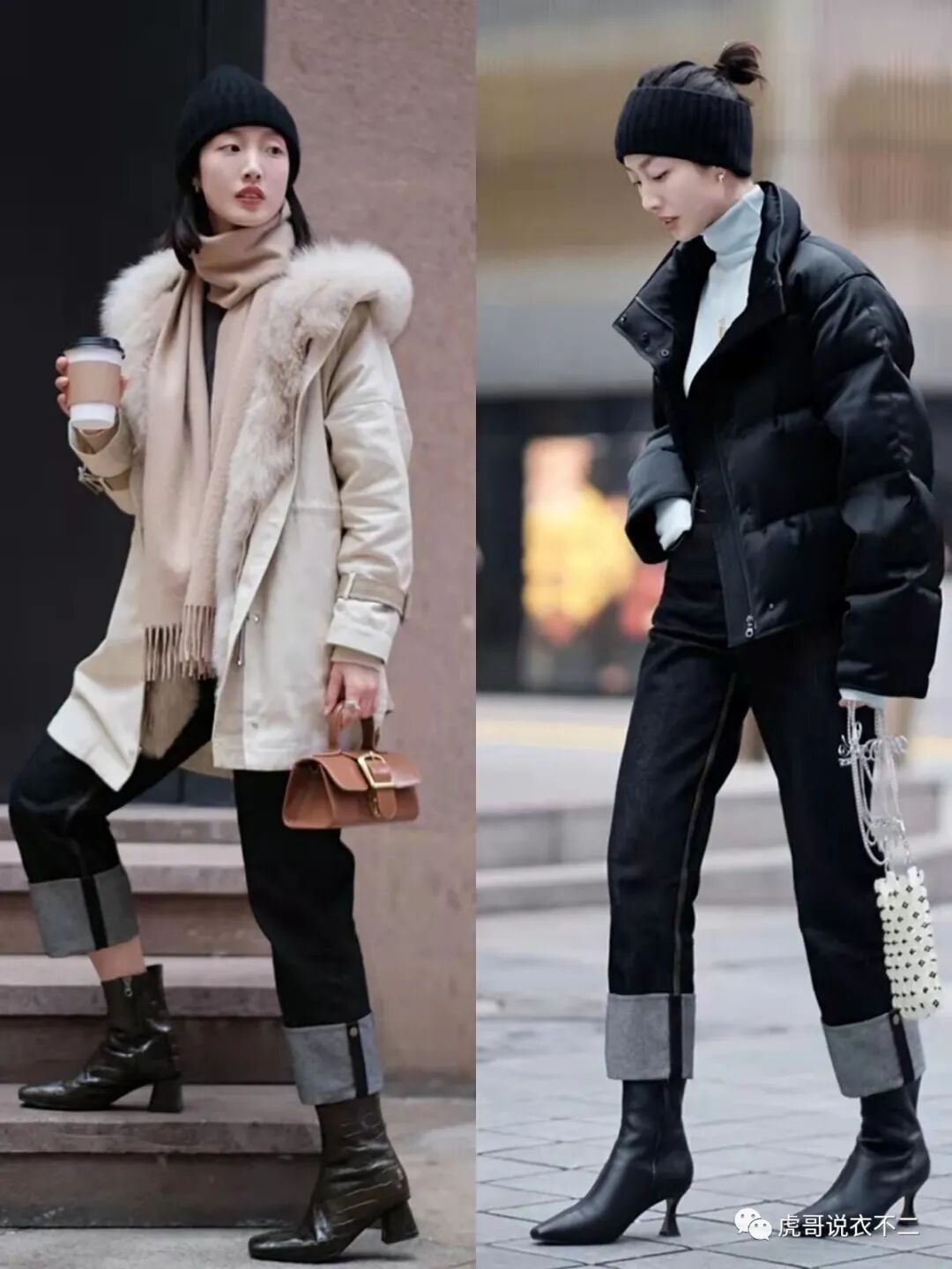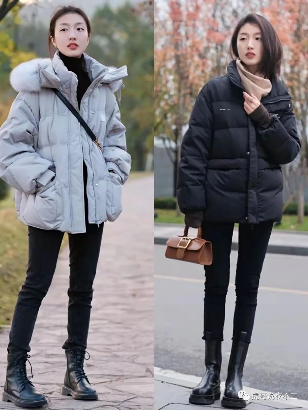 部分小个子女生到了冬季,可能会借助露脚踝、露腿的方式来缓解羽绒服本身臃肿感,这确实是一种思路,但对于普通人来说,穿得保暖更重要。