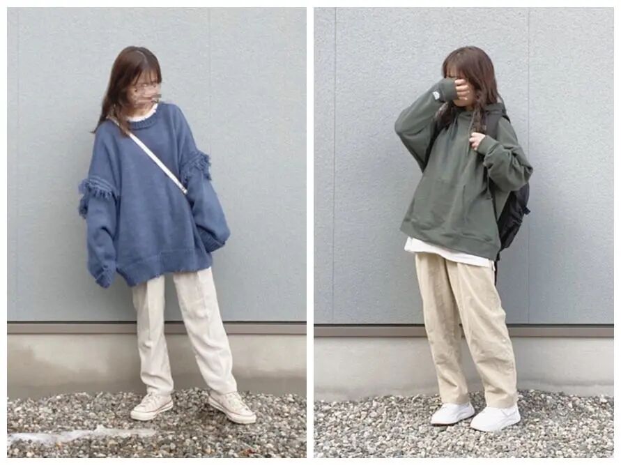 同样都是毛衣搭配休闲裤,不同的版型上身效果真的会有不同……