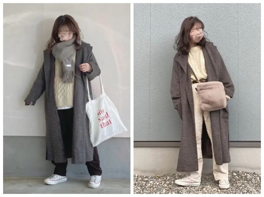 长大衣搭配休闲裤,整体LOOK非常有质感,兼具大气成熟稳重,是气质型女生的首选。